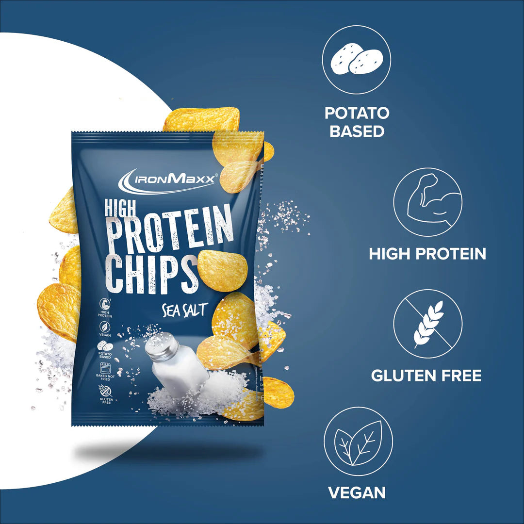 The IronMaxx® High Protein Potato Chips are the perfect fitness snack for anyone who wants full flavour while reaching their fitness goals. With a hefty 30 g of protein per 100 g, they effectively support muscle building – all without the guilt. Made from potatoes, pea protein, and rice flour, they boast a natural recipe, low sugar, only 6 g of fat, and are gluten-free. Perfect for diet phases, as a post-workout snack, or for mindful snacking anytime.Suggested Use